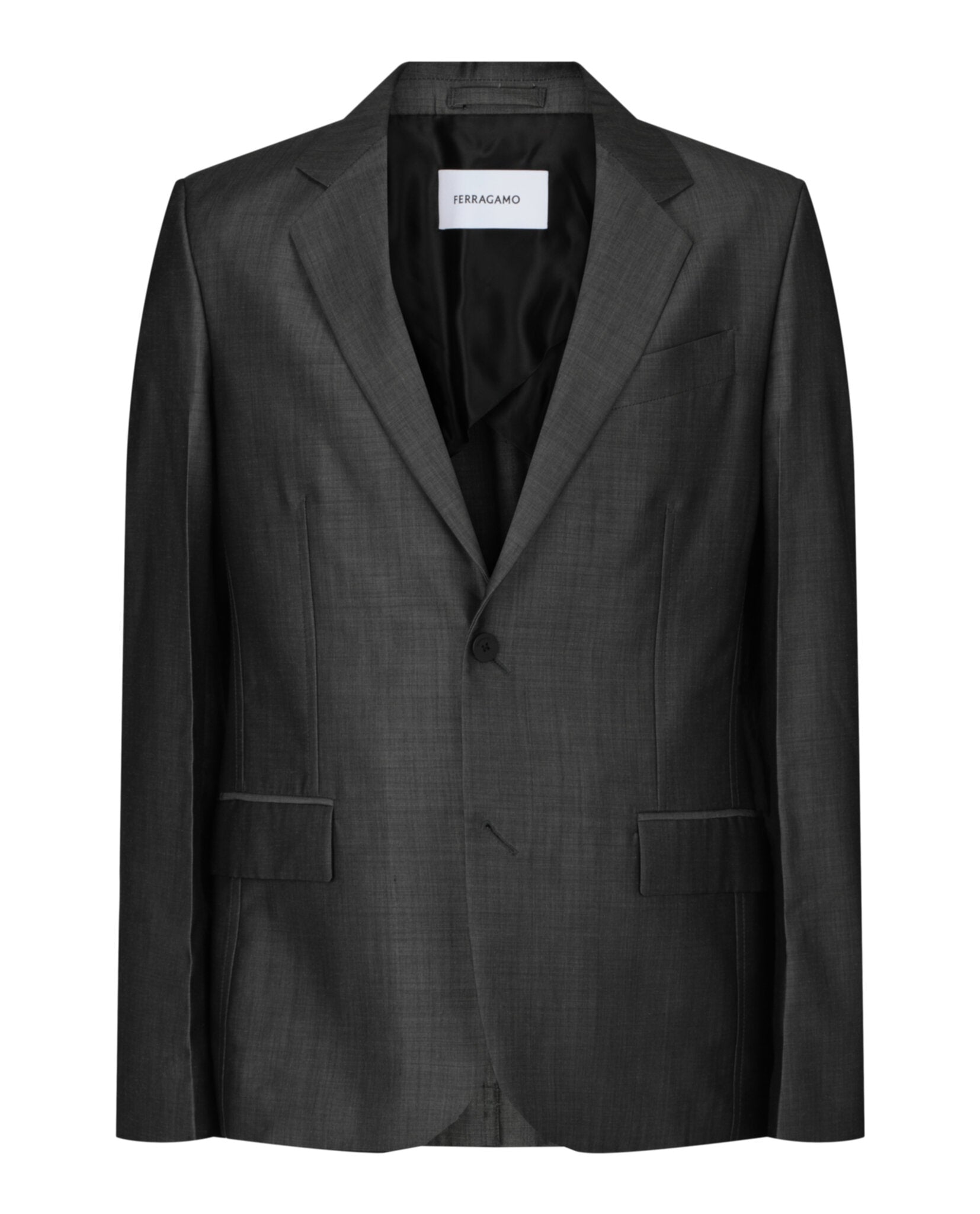 - Darted design; Back vent; Metallic shine; Partially lined; Two front flap pockets, one front welt pocket at the chest and two interior welt pockets
