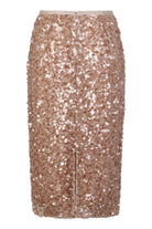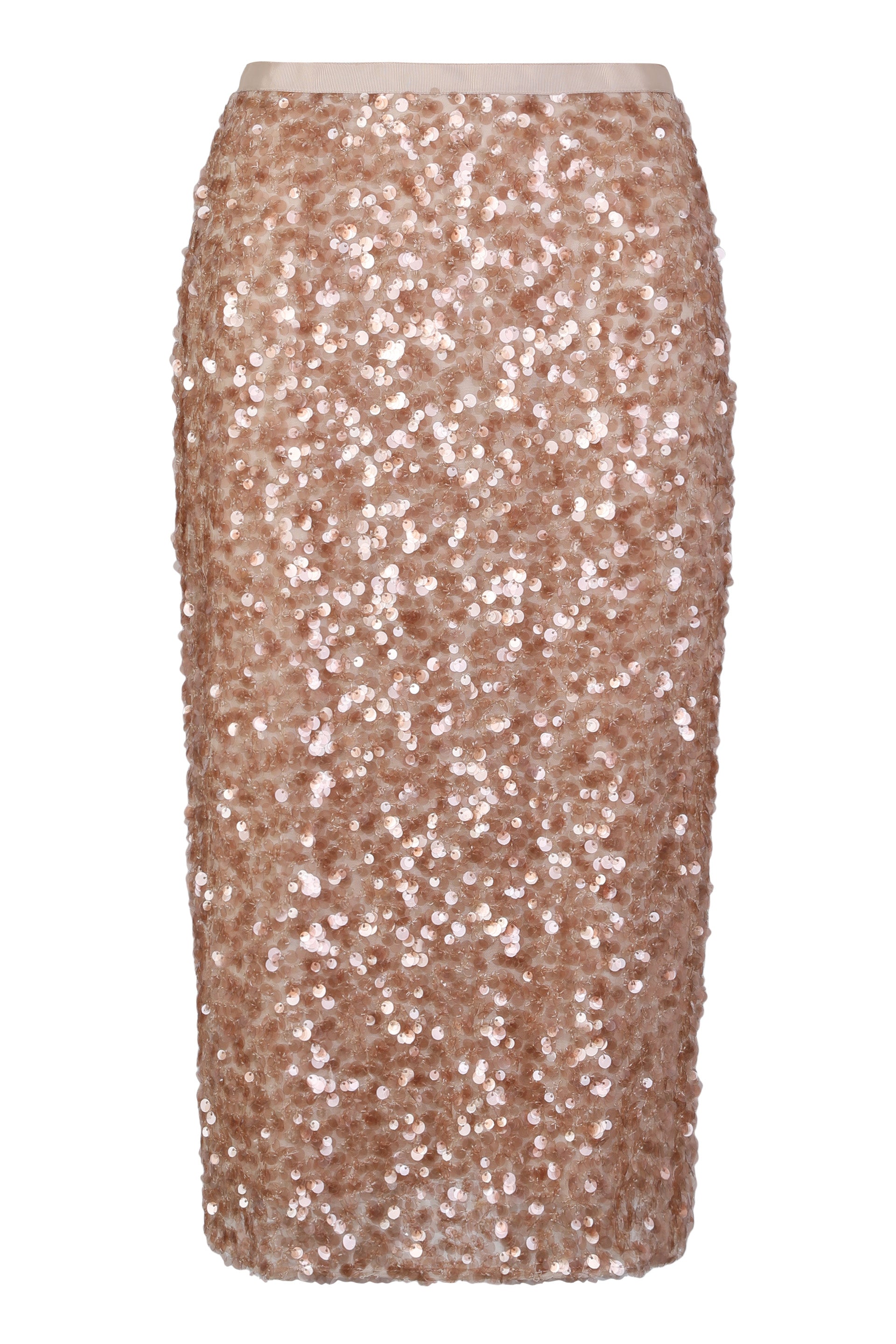 TULLE LONGUETTE SKIRT COMPLETELY COVERED WITH EMBROIDERED SEQUINS ALL OVER. THE FITTED SILHOUETTE HIGHLIGHTS THE FIGURE, WHILE THE HEM IS STRAIGHT FOR A REFINED CUT. PERFECT FOR SPECIAL OCCASIONS OR FOR A SOPHISTICATED LOOK IN EVERYDAY LIFE, IT CAN BE PAIRED WITH BLOUSES AND TOPS FOR A COMPLETE OUTFIT.