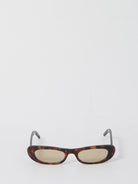 Tortoise brown Havana sunglasses. Narrow and elongated cat-eye acetate frame, with the Saint Laurent signature engraved on the temples.