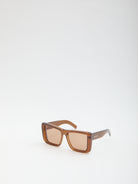 Brown sunglasses. Square acetate frame, transparent nylon lenses, Saint Laurent engraved temples. 100% UVA/UVB protection. Frame compatible with prescription lenses.