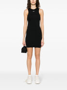 Elevate your wardrobe with this sleek black rowing dress from Off-White. This form-fitting mini dress features a classic crew neckline and sleeveless design, perfect for making a statement.