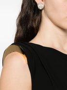 Make a striking entrance in this stunning sleeveless long dress from Elisabetta Franchi. This sophisticated black gown features an eye-catching asymmetrical hem and elegant draped detailing that creates beautiful movement and dimension.