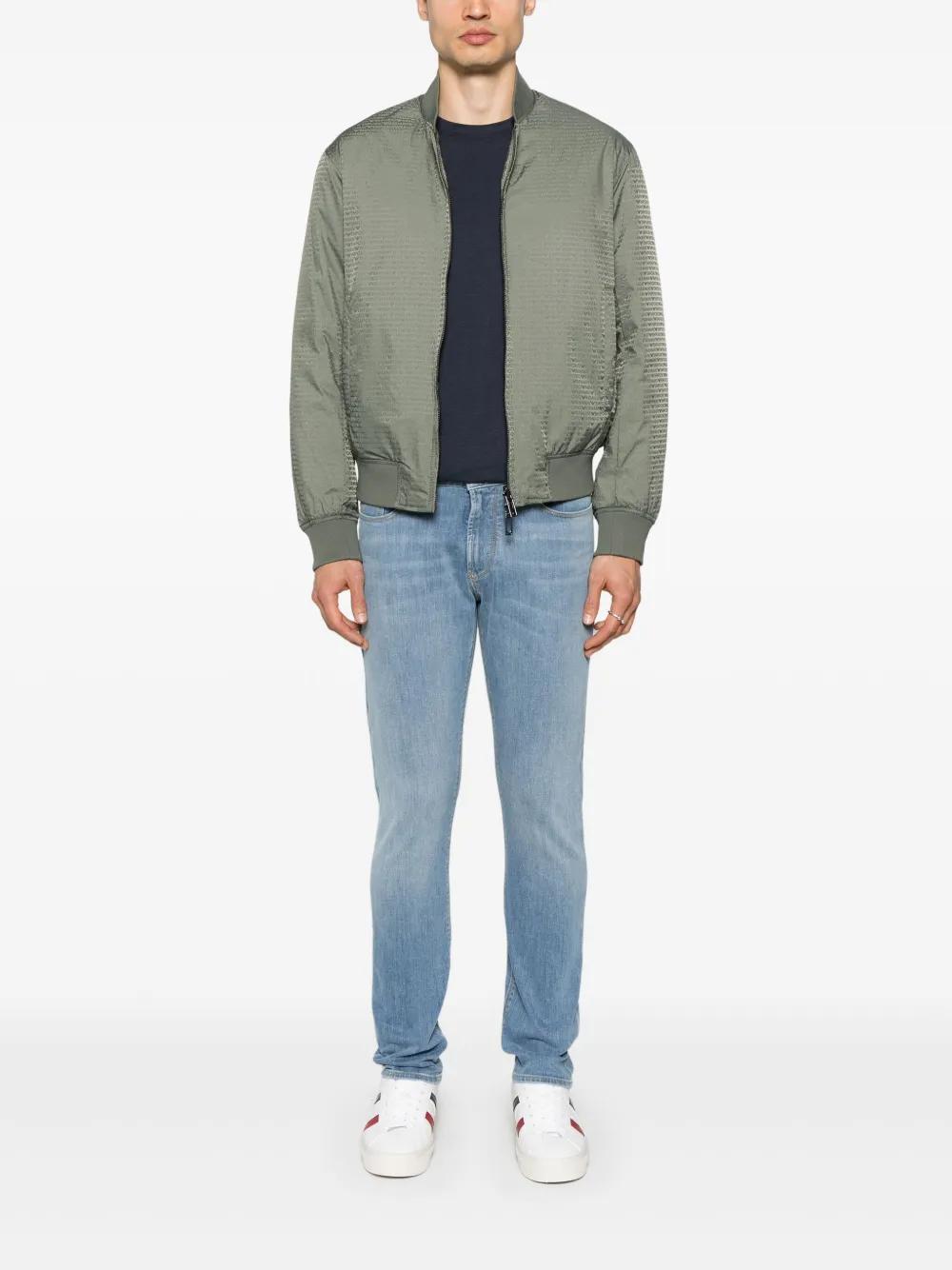 EMPORIO ARMANI SKINNY-LEG JEANS LIGHT BLUE FRONT BUTTON AND ZIP FASTENING BELT LOOPS CLASSIC FIVE POCKETS LOGO PLAQUE COTTON ELASTANE SKINNY JEANS DENIM CLOTHING MEN
