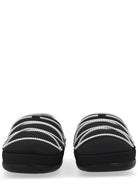 Elevate your loungewear game with the SLIPPER ICON from Moon Boot. This contemporary slipper features a sleek black design adorned with striking white chain-inspired detailing that wraps around the silhouette, creating an edgy yet comfortable aesthetic.