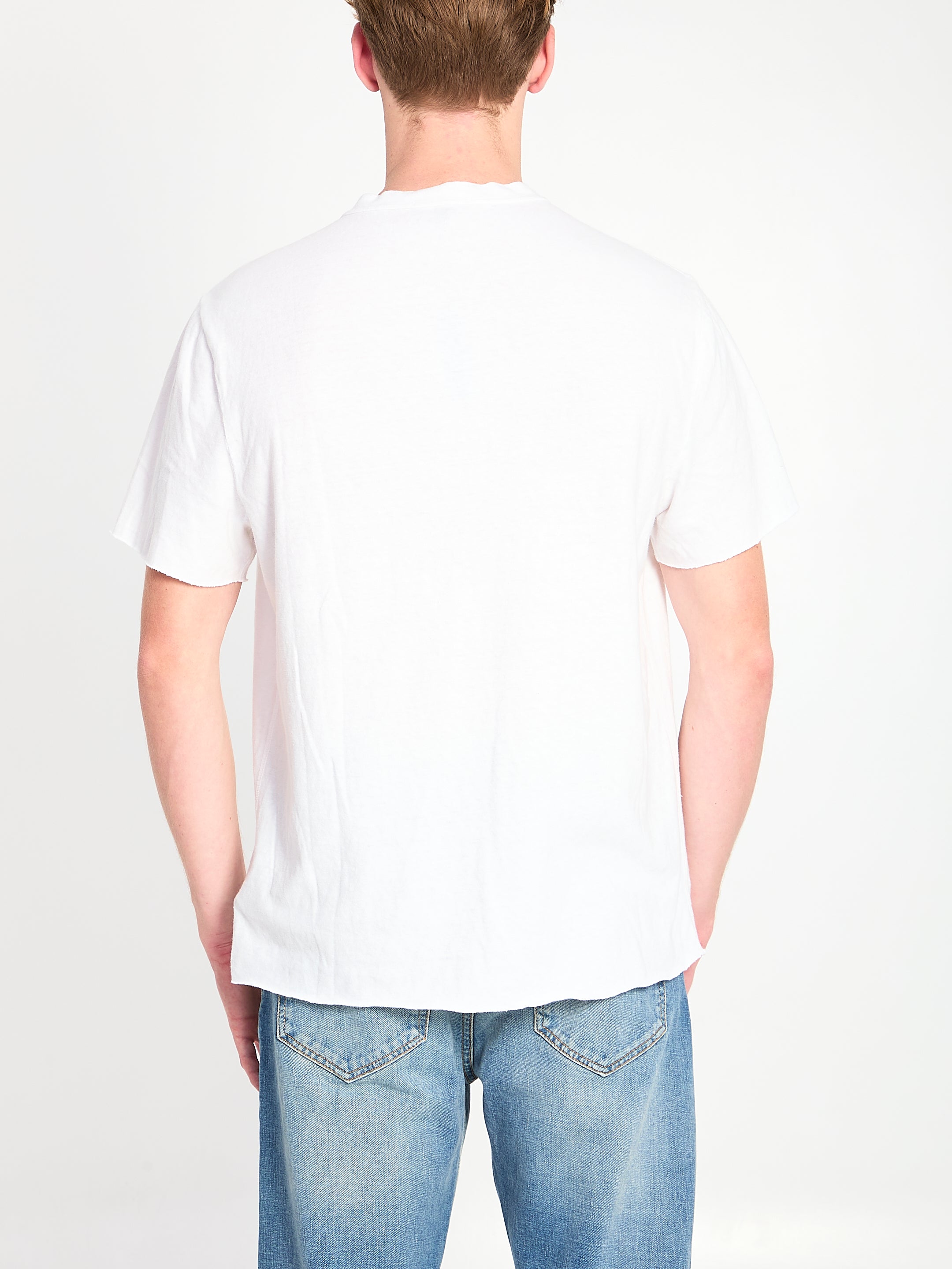 WHITE COTTON JERSEY T-SHIRT. FEATURES A RIBBED CREW NECK WITH TWO BUTTONS, SHORT SLEEVES, RAW-CUT HEMS. REGULAR FIT.
