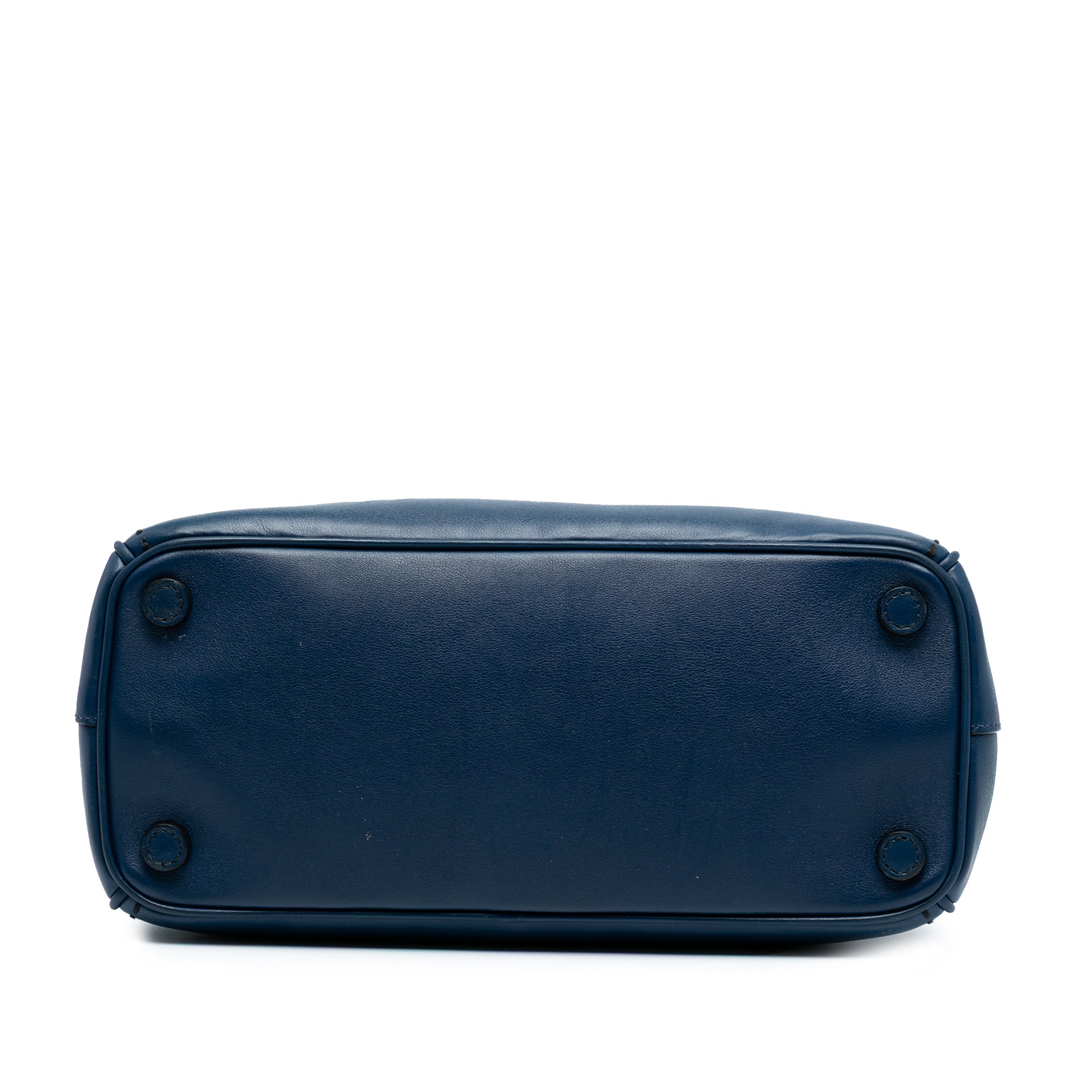 The double zip compartments provide exceptional organization, while interior zip and slip pockets keep your essentials secure and accessible. The structured silhouette and refined navy blue leather make this piece perfect for transitioning seamlessly from the office to evening engagements.