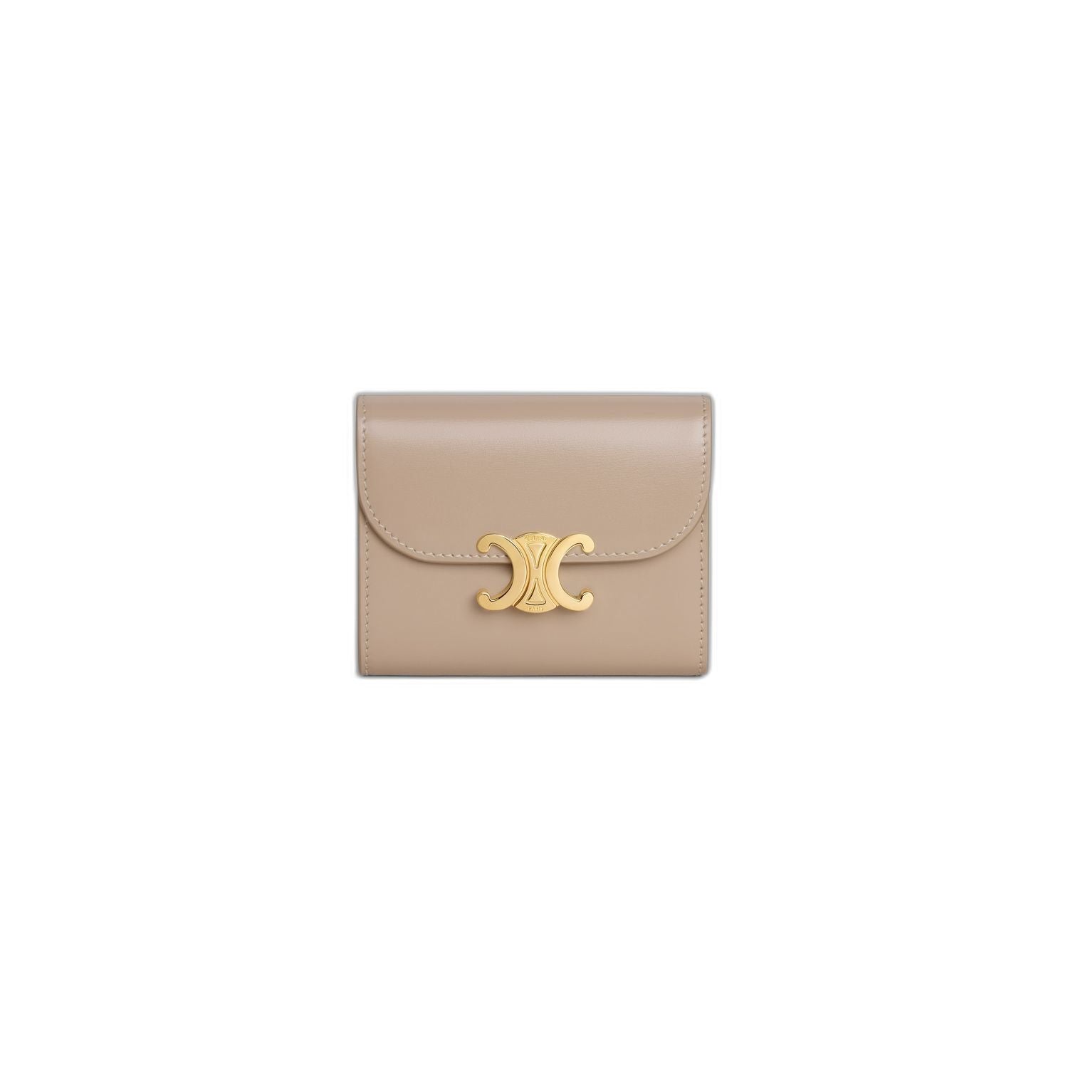 Elevate your everyday essentials with this exquisite Small Flap Wallet from Celine. Crafted from supple leather in a sophisticated neutral tone, this compact wallet features the iconic Celine logo clasp in gleaming gold hardware.