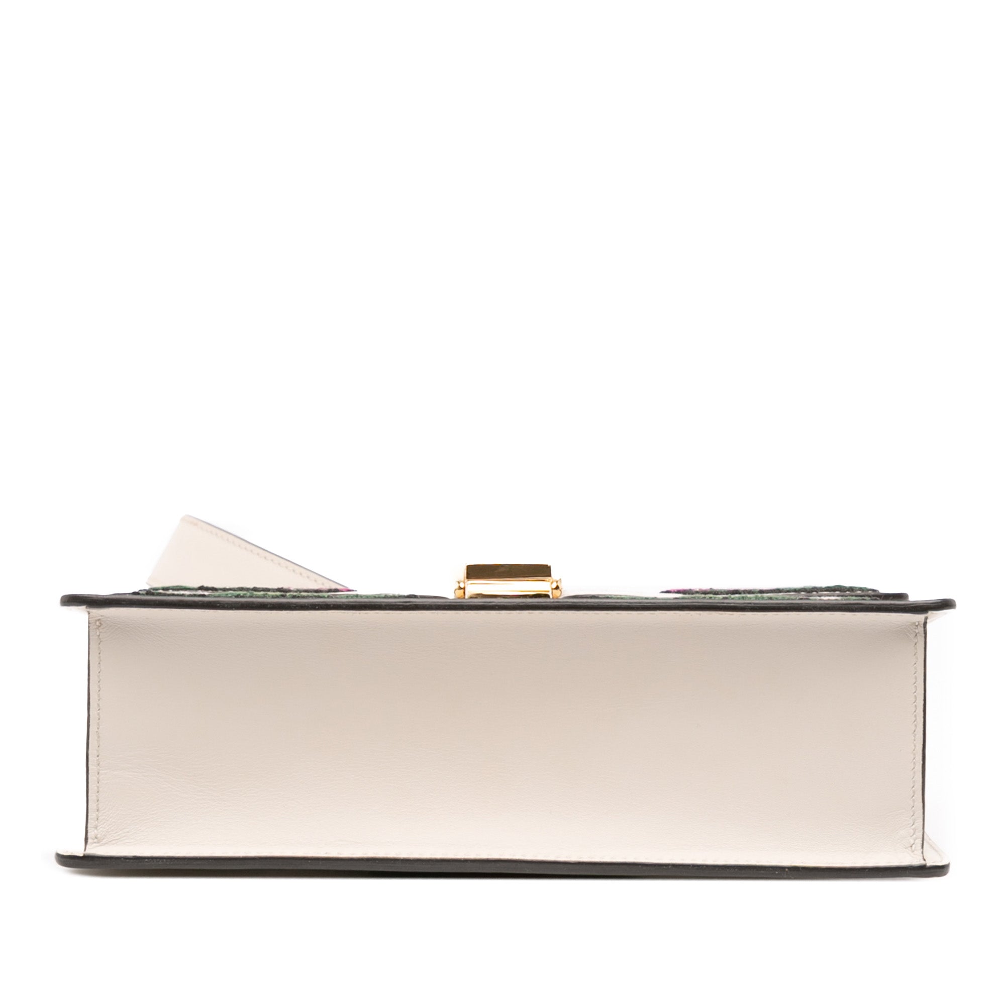 The Gucci Small Floral Embroidered Leather Sylvie Satchel is a stunning statement piece that effortlessly combines luxury craftsmanship with romantic elegance. This exquisite bag features beautiful floral embroidery on premium leather, complemented by the signature Sylvie web stripe detail and a structured silhouette.