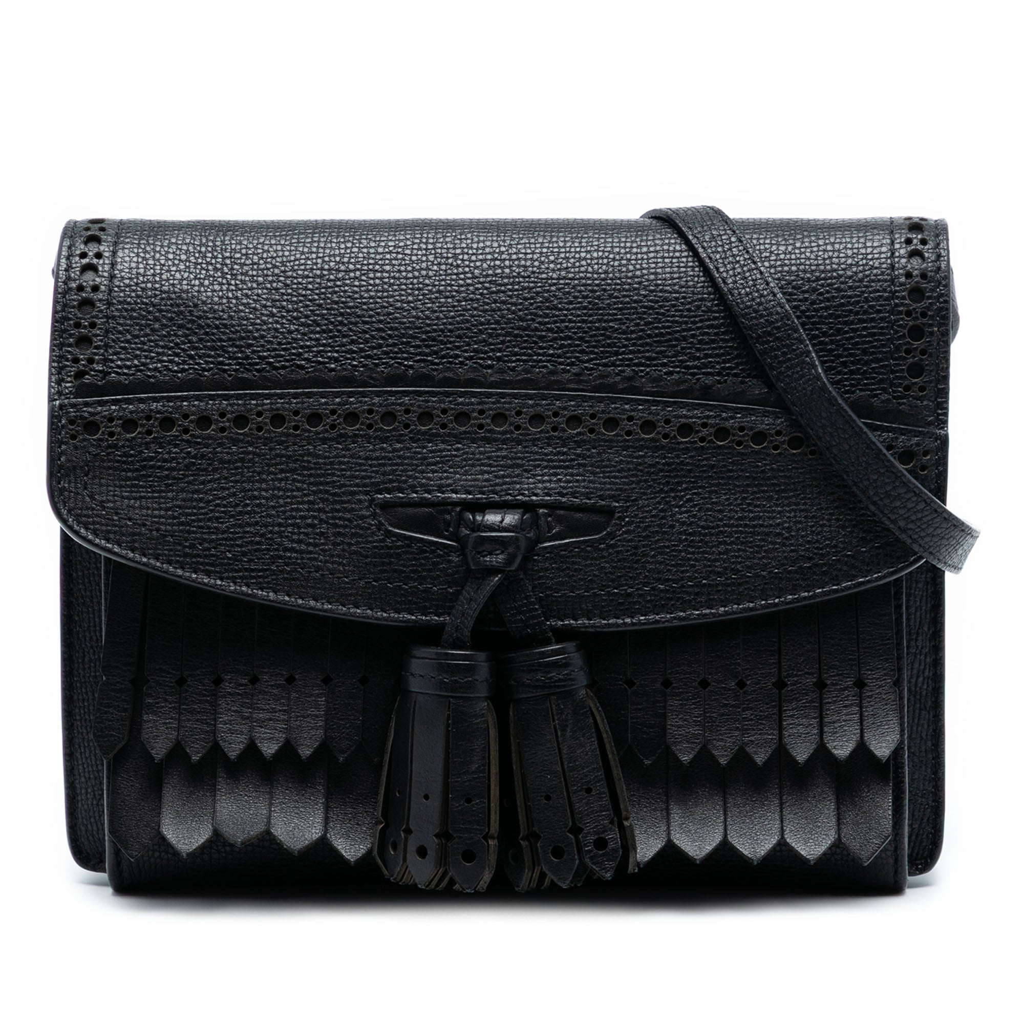 Small Grainy Calfskin Broguing Tassel Macken Crossbody