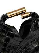 Elevate your accessory collection with this stunning Small Japanese Bag from MM6 Maison Margiela, crafted in luxurious black crocodile-embossed leather. The distinctive design features an elegant engraved brass handle that doubles as a sophisticated architectural detail, while the adjustable strap offers versatile styling options for crossbody or shoulder wear.