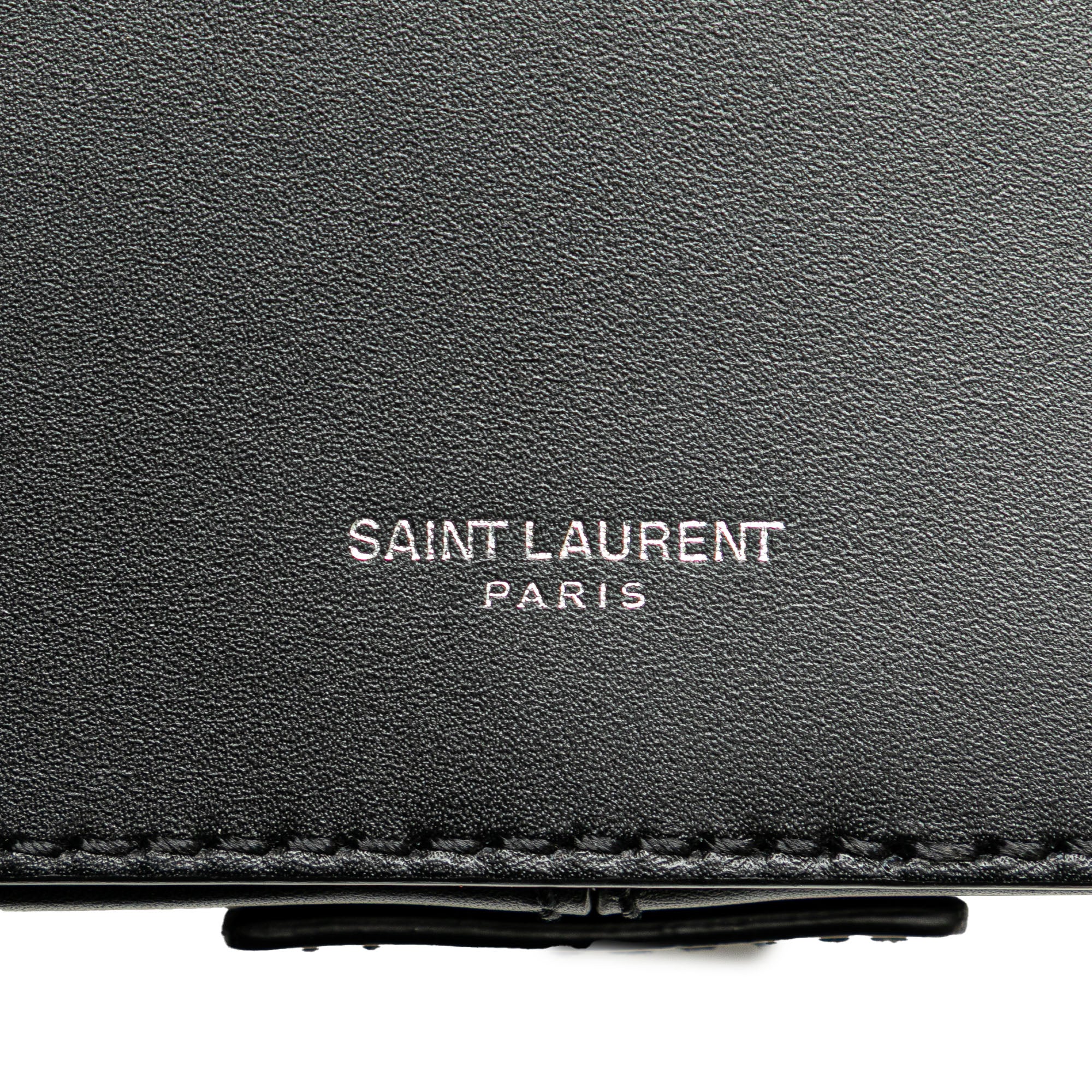 This satchel features a leather body, flat leather top handle, an adjustable and detachable flat leather strap, a push lock closure, and an interior slip pocket.