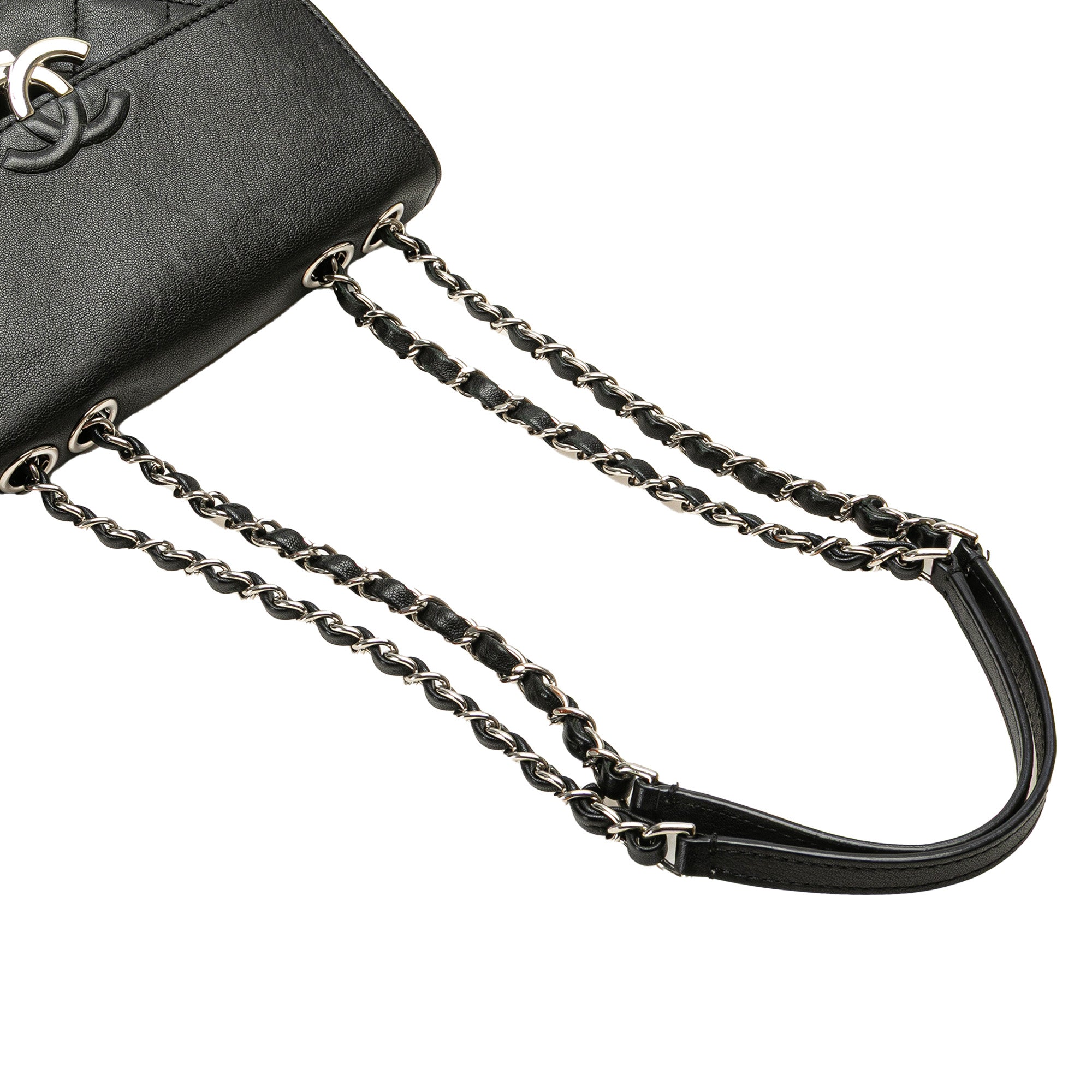 The leather-woven chain link straps with flat leather shoulder guard provide both comfort and style, making this bag perfect for day-to-night transitions. The interior slip pocket keeps your essentials organized while maintaining the bag's sleek silhouette.
