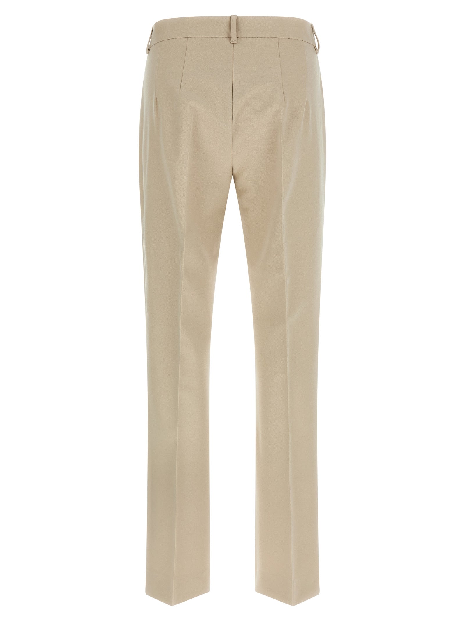 The slightly flared leg creates a flattering silhouette, while the stretched pleat and back pin tucks add dimensional detail and a tailored finish. Featuring a classic zip, hook, and front button closure with functional pockets, these versatile trousers seamlessly transition from office meetings to after-work engagements.