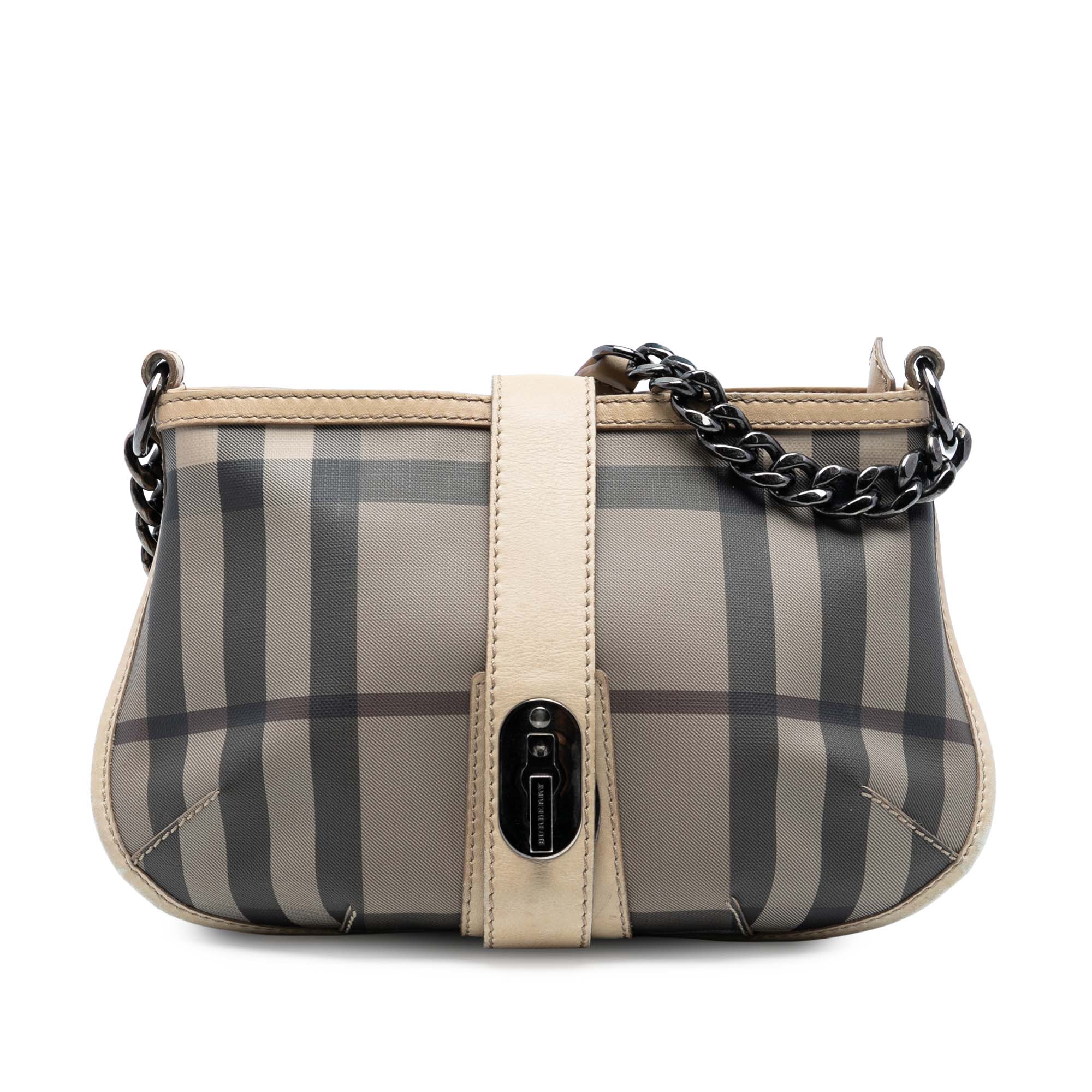 Elevate your everyday style with this sophisticated Burberry Smoked Check Coated Canvas Crossbody. This timeless piece features the iconic Burberry check pattern in a smoked colorway, crafted from durable coated canvas with luxurious leather trim.