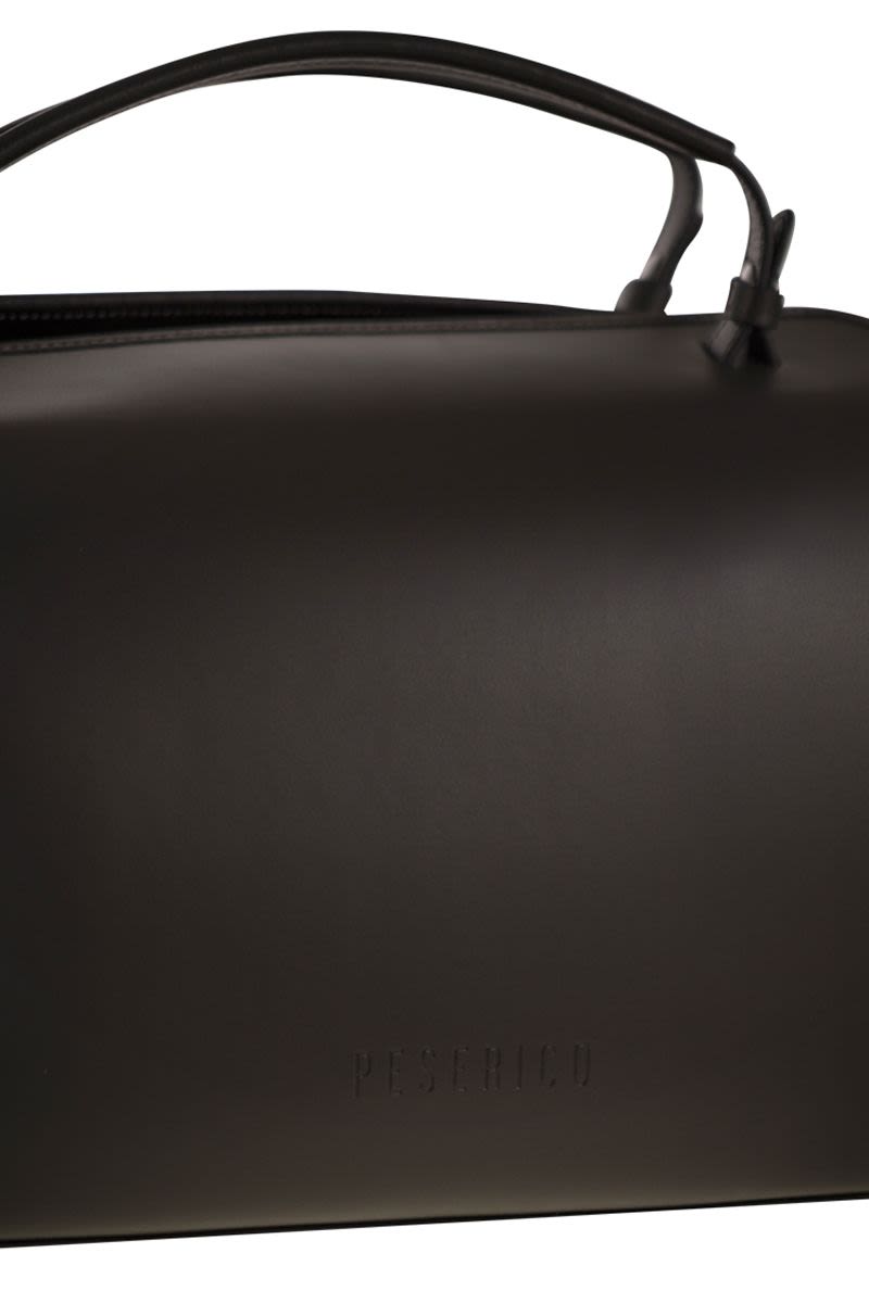 HANDBAG MADE OF GENUINE LEATHER, WITH COTTON LINING. THE SATCHEL SHAPE AND EMBOSSED LOGO ON THE FRONT ADD CHARACTER TO THE DESIGN. EQUIPPED WITH PRACTICAL INTERNAL POCKETS AND A ZIP CLOSURE, THIS BAG COMBINES FUNCTIONALITY AND ELEGANCE, EASILY ADAPTING TO BOTH CASUAL AND FORMAL OUTFITS. - DETACHABLE SHOULDER STRAP INTERIOR: - 1 LARGE ZIPPERED POCKET - 1 OPEN LEATHER POCKET AND 1 SMALLER LEATHER POCKET WITH SLOT DESIGNER ID: S38365C0CC682 953 W 38 X H 22 X D 22.5 CM