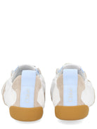 Elevate your casual style with the Sneaker Kick from Chloé. This sophisticated low-top sneaker features a pristine white base beautifully accented with soft beige suede overlays and a distinctive gum sole for a touch of contemporary elegance.