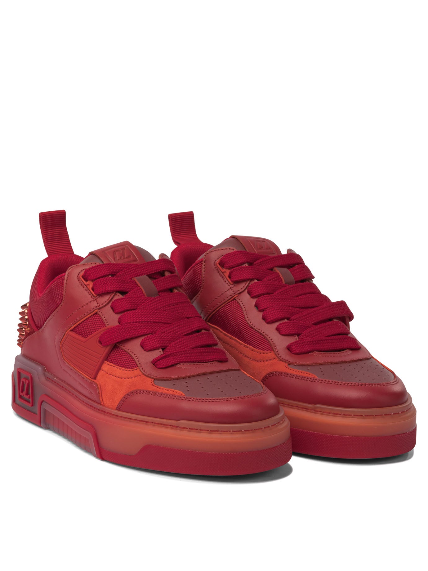 Elevate your sneaker game with these stunning low-top sneakers from Christian Louboutin. Crafted in a rich burgundy hue, these statement shoes feature the brand's iconic studded spike detailing on the heel counter, adding an edgy, luxurious touch to any outfit. The chunky platform sole provides both comfort and contemporary style, while the tonal design creates a cohesive, fashion-forward look. Perfect for adding a bold pop of color and designer flair to your casual wardrobe, these sneakers seamlessly transition from day to night. Whether you're running errands or meeting friends for brunch, these Christian Louboutin sneakers will ensure you step out in style.