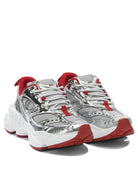 Elevate your sneaker game with these stunning metallic silver low-top sneakers from Christian Louboutin. Featuring the brand's signature red accents on the collar and outsole, these athletic-inspired shoes combine luxury craftsmanship with contemporary street style.