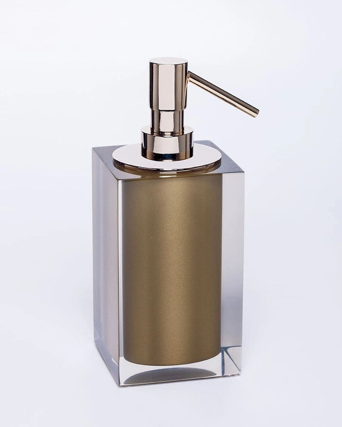 Elevate your bathroom aesthetic with this stunning Soap Dispenser from Vallvé's Gloss Gold collection. Crafted from premium crystal resin with a luxurious gold metallic finish, this dispenser features beautiful golden hues that add a touch of opulence to any bath space. The polished clear and gold design creates a sophisticated transparency that catches the light beautifully.