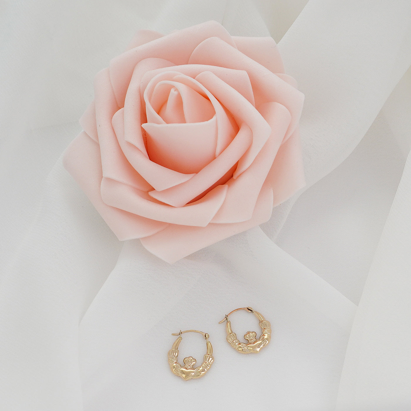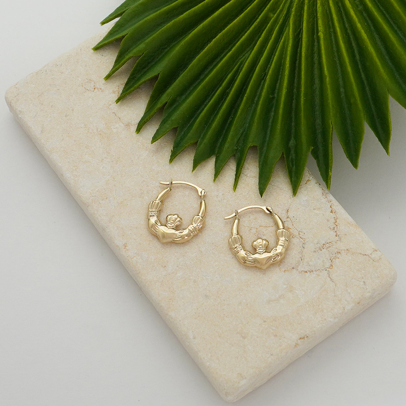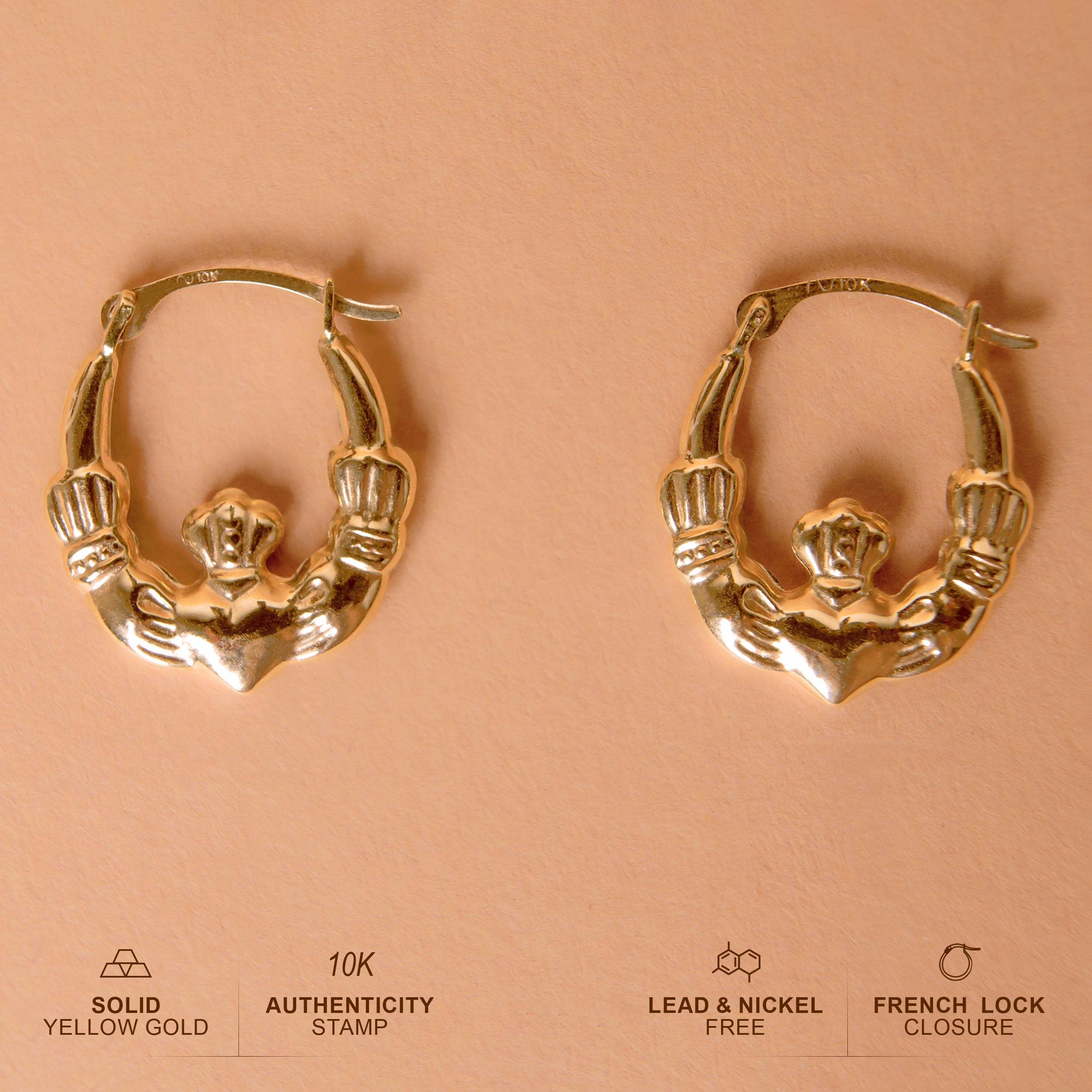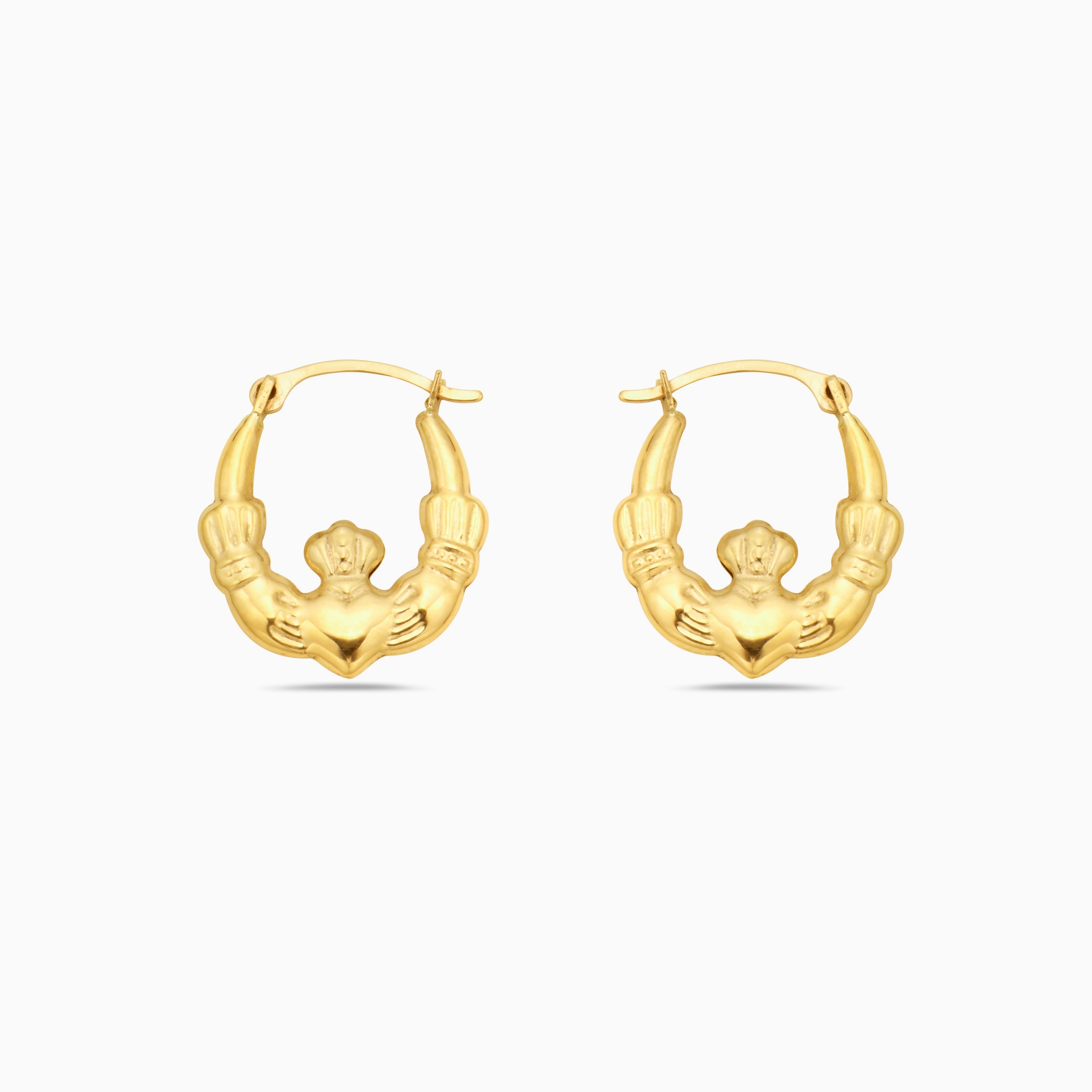 Solid Gold Irish Claddagh Hoop Earrings