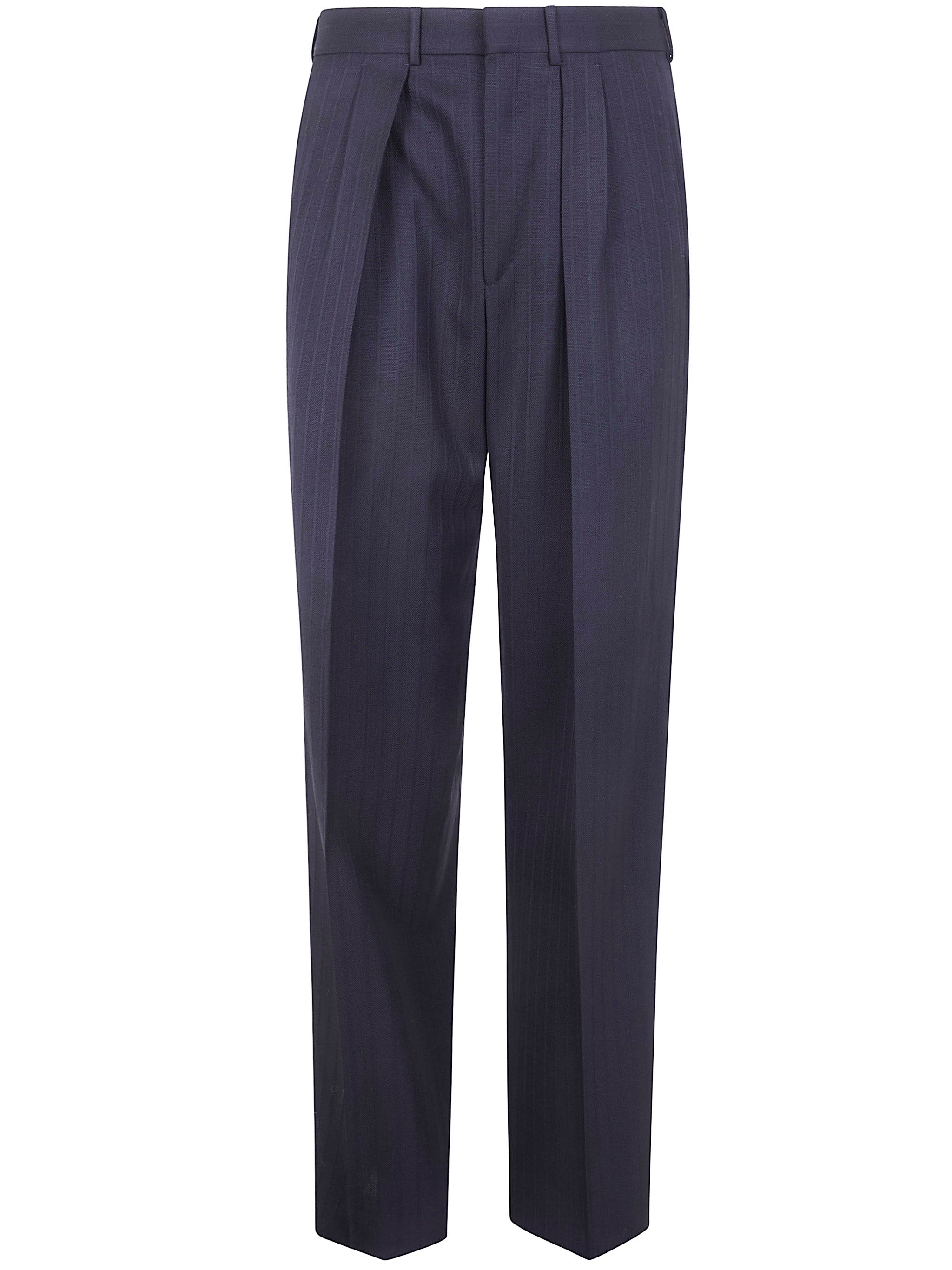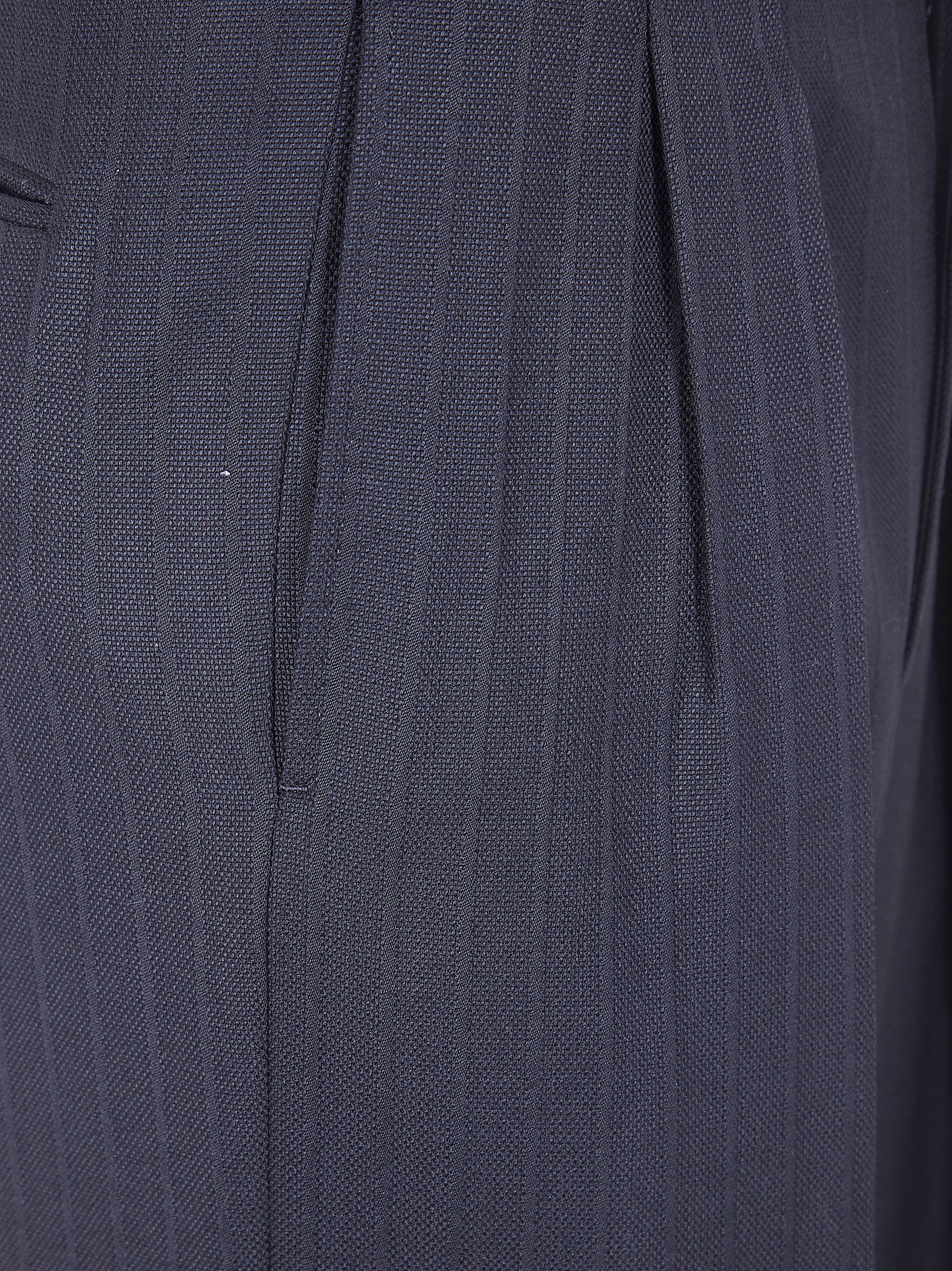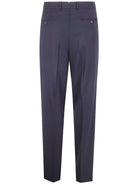 The double pleat construction provides a comfortable, relaxed fit while maintaining a polished appearance perfect for the office or special occasions. The rich navy tone and luxurious fabric make these pants a versatile foundation piece that pairs beautifully with blazers, dress shirts, and fine knitwear.