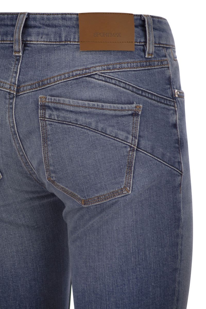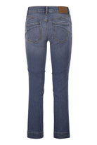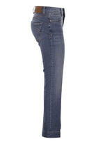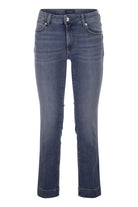 AUTHENTIC STRETCH INDIGO DENIM TROUSERS WITH A DARK USED AND MEDIUM VINTAGE FINISH, LOW WAIST, FLARE LINE AND PERFECT CONSTRUCTION THAT HIGHLIGHTS YOUR SHAPE. CROPPED AT THE ANKLE FOR AN EVEN MORE SLENDER SILHOUETTE. - PERFECT MINI FLARE LINE - 5-POCKET CONSTRUCTION WITH LOW WAIST - CUSTOM RIVETS AND BUTTON - CONTRAST STITCHING AND CUSTOM LABEL - SLIM FIT DESIGNER ID: 2612181265600 005