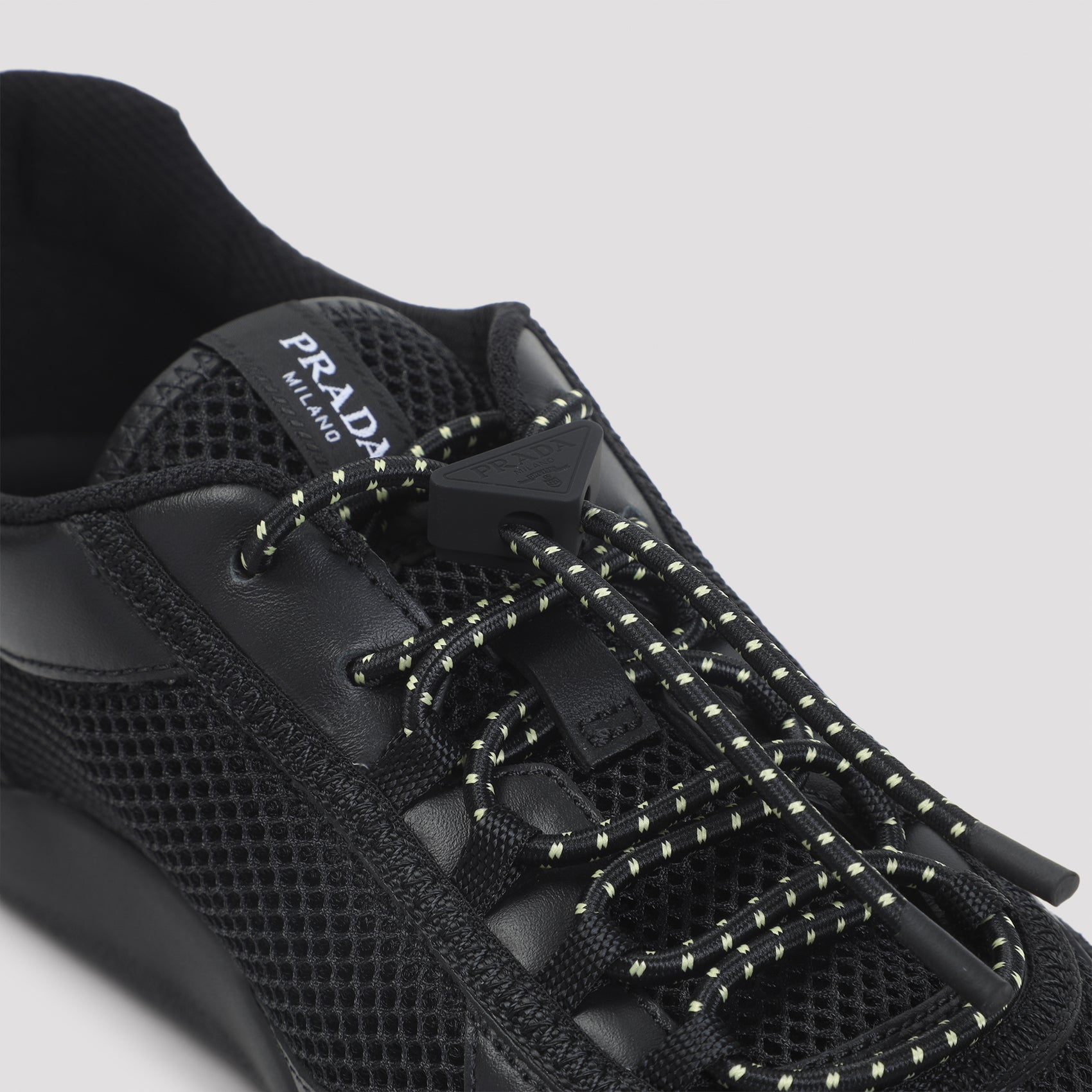 The sleek black colorway and streamlined silhouette make these versatile enough to transition seamlessly from casual weekend outings to off-duty styling. Whether you're running errands around the city or meeting friends for a relaxed lunch, these Prada sneakers add an elevated touch to any ensemble.