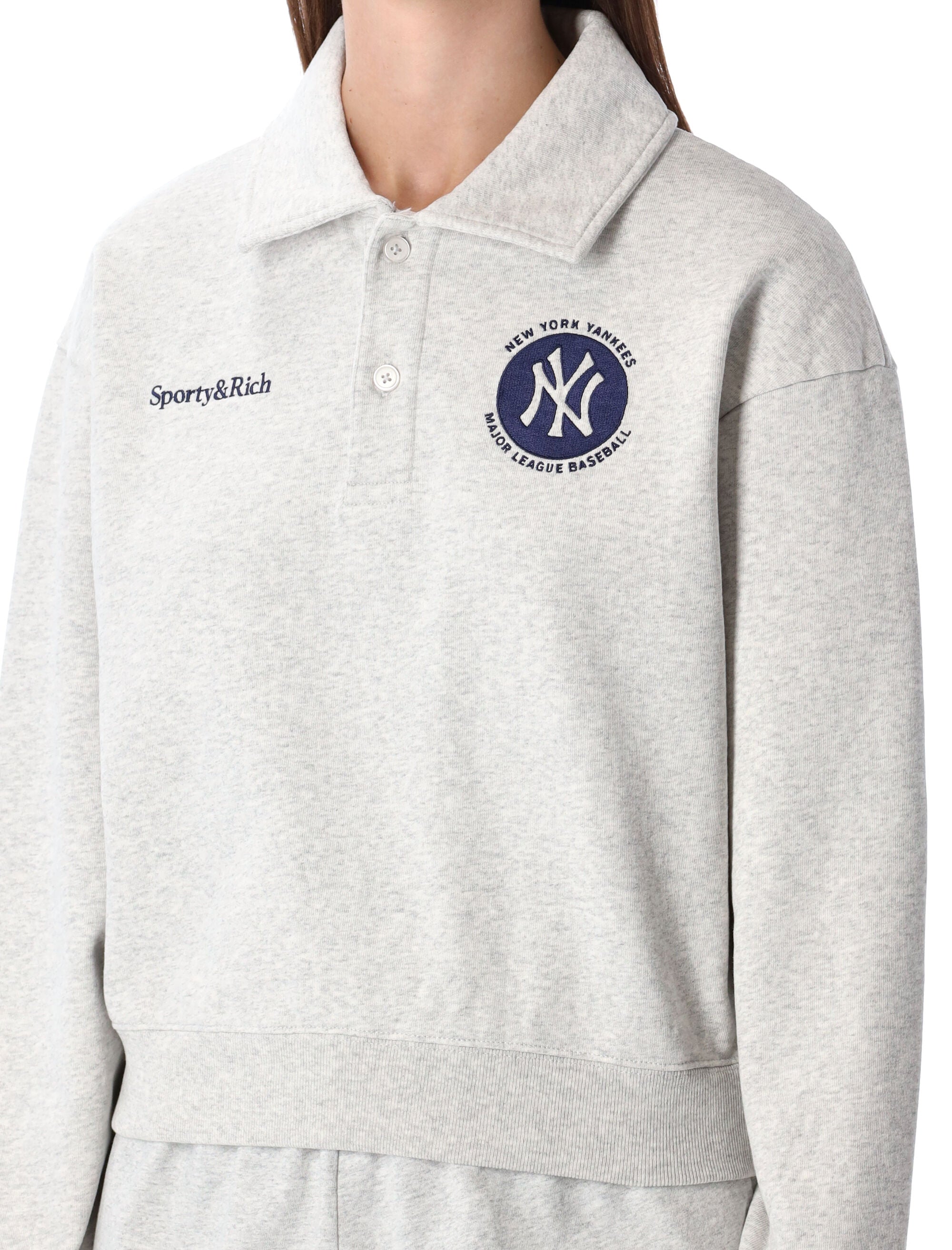 CRAFTED FROM SOFT COTTON, IT FEATURES A SLIGHTLY OVERSIZED SILHOUETTE WITH A CROPPED LENGTH, A CLASSIC POLO COLLAR, AND THE ICONIC NEW YORK YANKEES CREST AT THE CHEST.