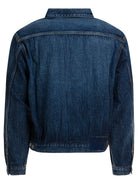 Denim jacket "SS 101X JKT DMGD-1010" Visvim made of 13-ounce denim features a rigid construction and classic silhouette. Construction includes visible stitching, iron buttons and rivets, and zippered side pockets. The finish gives a worn effect, complemented by blue selvedge along the edges. The zipper closure is customized and the back features a natural-dyed buckskin patch.