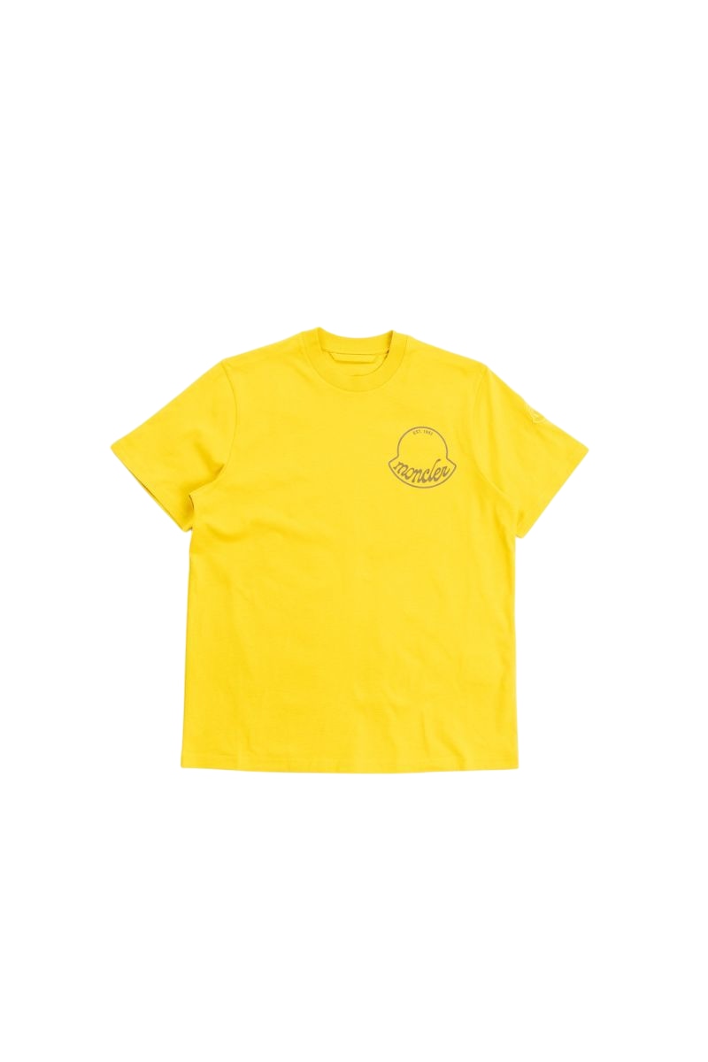 YELLOW COTTON T'SHIRT.HIGH ROUND NECK AND SHORT SLEEVES.PRINTED AND EMBOSSED LOGO.REGULAR FIT.