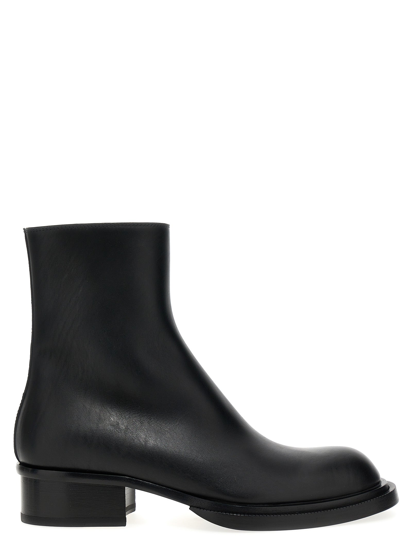 Elevate your footwear collection with the 'Stack' Cuba ankle boots from McQueen. Crafted from luxurious black calf leather, these sophisticated booties feature a distinctive double layer sole that adds architectural interest and modern edge to the classic silhouette.
