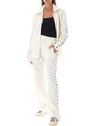 BEHOLD THESE GOLDEN GOOSE DELUXE BRAND STAR TAPE TRACK PANTS - A STANDOUT PIECE CRAFTED FROM AN ELEGANT BLEND OF RAFFIA AND CANVAS. THIS MULTICOLORED CLASSIC DESIGN FEATURES STAR-SHAPED TAPE AT THE LEFT THIGH, ADDING VISUAL INTRIGUE TO ITS SLENDER SILHOUETTE WITH COMFORT ADDED FOR FLEXIBILITY ON ANY OCCASION. PERFECTLY ACCENTUATED BY A TINGE OF WARMTH, THIS PANT PROMISES EFFORTLESS STYLE THAT WORKS WHENEVER YOU STEP OUT.