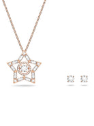 SWAROVSKI STELLA NECKLACE AND EARRINGS SET ROSE GOLD/CRYSTAL NECKLACE AND EARRINGS SET LOGO CRYSTAL MADE IN AUSTRIA