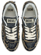 This distinctive low-top sneaker features a striking distressed denim finish with leopard print accents, creating a unique vintage-inspired aesthetic that sets you apart from the crowd. The classic lace-up design and cushioned sole ensure all-day wearability, while the iconic Diesel branding adds an unmistakable touch of luxury.