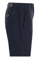 COTTON BLEND SHORTS WITH A CLASSIC CUT AND EXTRA STRETCH TO MAKE THEM EVEN MORE COMFORTABLE TO WEAR. - BELT LOOPS. - ZIP FLY AND BUTTON FASTENING. - FINISHED TENT BELT. - TWO FRONT CORNER POCKETS. - COIN POCKET ON RIGHT HIP. - BACK LEFT POCKET WITH BUTTON. - BACK RIGHT POCKET WITH BUTTON AND LOOP. - EXCLUSIVE EMBROIDERED PONY ABOVE RIGHT BACK POCKET. DESIGNER ID: 710799213 005