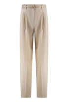 CLASSIC CUT TROUSERS IN WOOL FABRIC. THEY FEATURE TWO SIDE POCKETS AND BELT LOOPS AT THE WAIST WITH A REMOVABLE BELT.