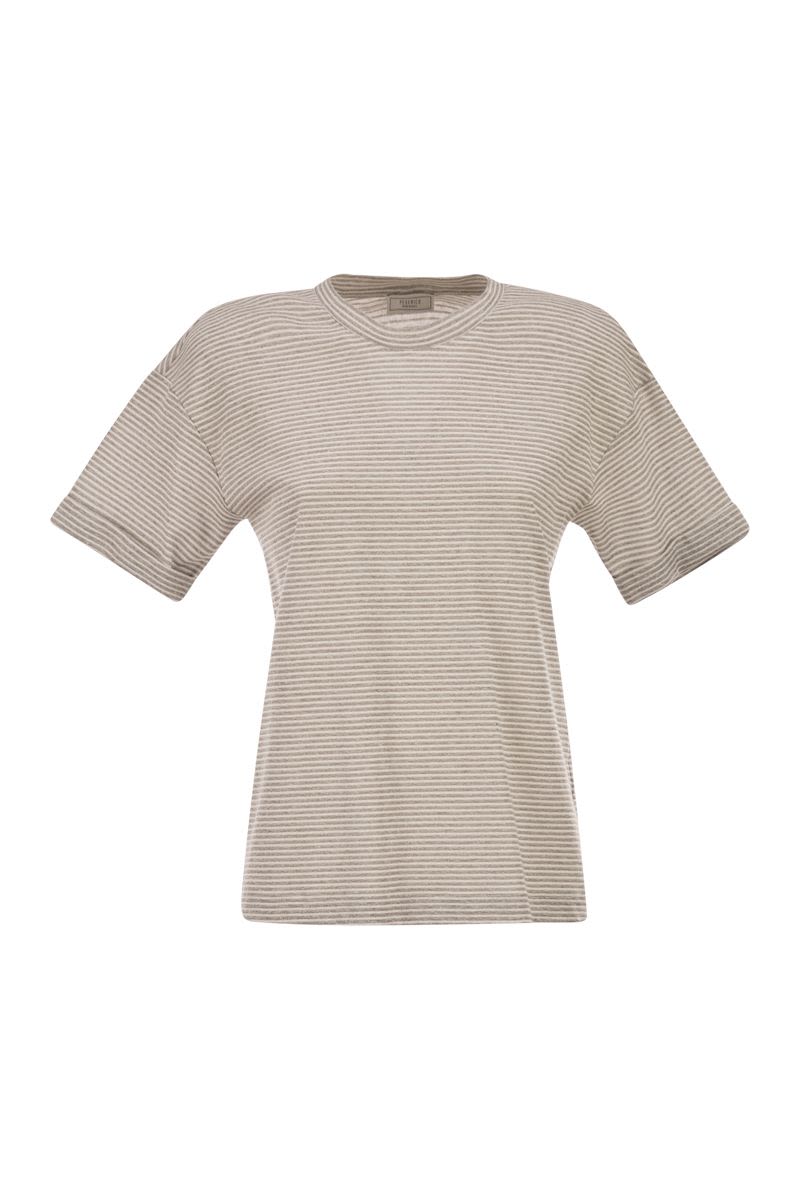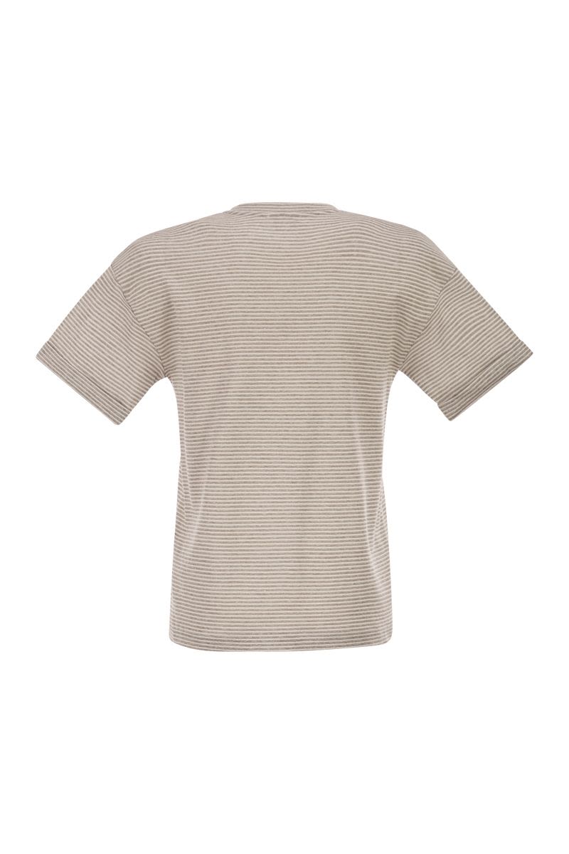 STRIPED LINEN AND COTTON T-SHIRT WITH LUMINOUS YARNS