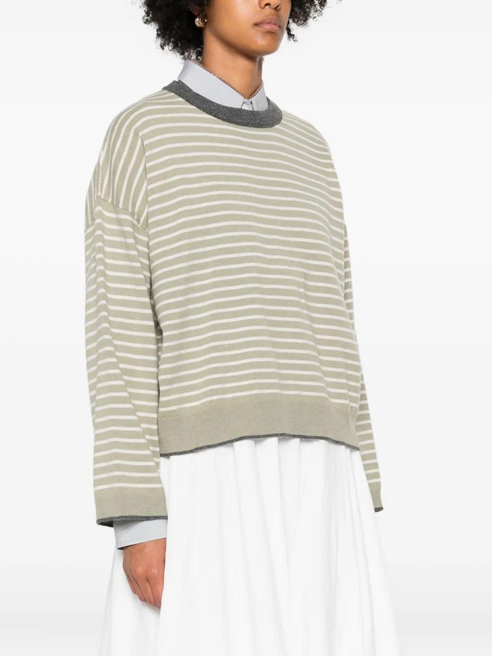 BRUNELLO CUCINELLI STRIPED CREW NECK SWEATER GREEN GREEN HORIZONTAL STRIPES CREW NECK LONG SLEEVES RIBBED CUFFS RIBBED HEM WOOL CASHMERE KNITTED SWEATERS KNITS CLOTHING WOMEN