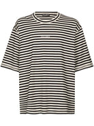 SHORT-SLEEVED CREWNECK T-SHIRT IN WHITE AND NAVY BLUE STRIPED COTTON. DOLCE & GABBANA LOGO ON THE FRONT. RELAXED FIT.