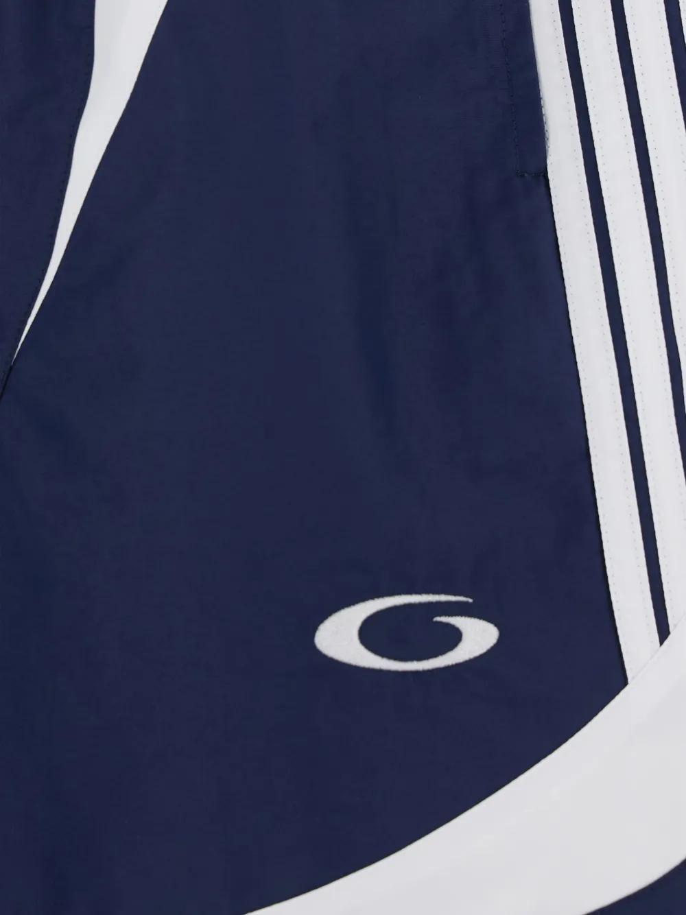Elevate your athletic wardrobe with these Balenciaga stripe-detail logo-print shorts in a rich navy blue. Designed for both performance and style, these track-inspired running shorts feature signature logo prints and contrasting stripe details that showcase the luxury brand's sporty aesthetic.