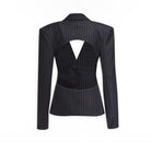Stripped Backless Blazer Jacket With Shoulder Padded