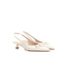 The classic slingback strap ensures a secure and comfortable fit, while the refined kitten heel provides just the right amount of lift for all-day wearability. Crafted in a versatile cream hue, these pumps effortlessly transition from office meetings to evening cocktails.