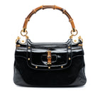 Suede and Patent Peggy Bamboo Top Handle Bag