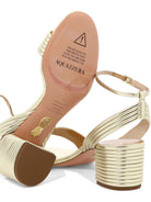 Elevate your evening style with the Sundance Sandal from Aquazzura. This sophisticated heeled sandal features elegant metallic straps that wrap beautifully around the foot and ankle, creating a luxurious and feminine silhouette.