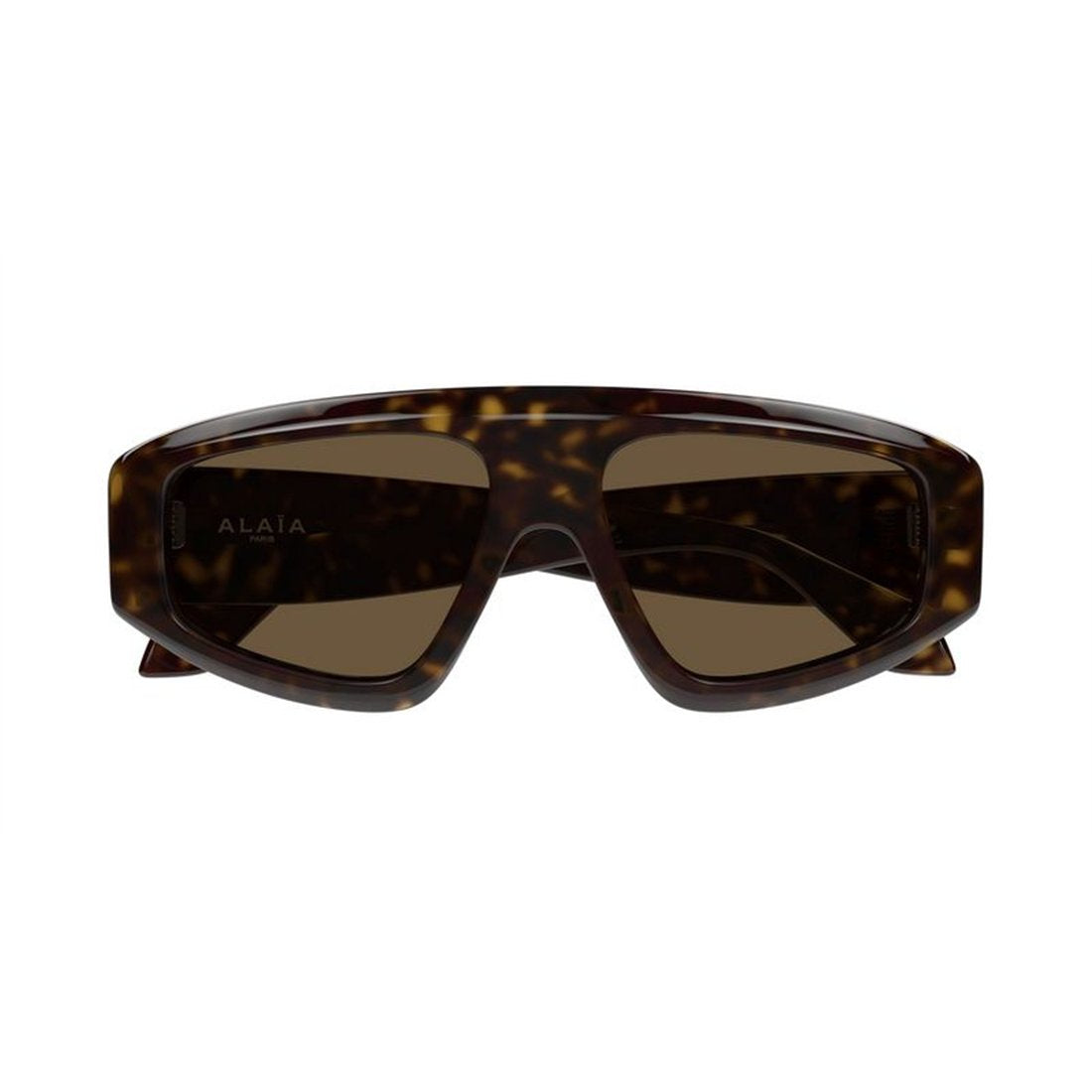 The brown tinted lenses provide excellent sun protection while maintaining a sophisticated aesthetic, perfect for any occasion from beach vacations to city strolls. The iconic Alaïa signature adorns the temples, showcasing the luxury craftsmanship this renowned fashion house is celebrated for.