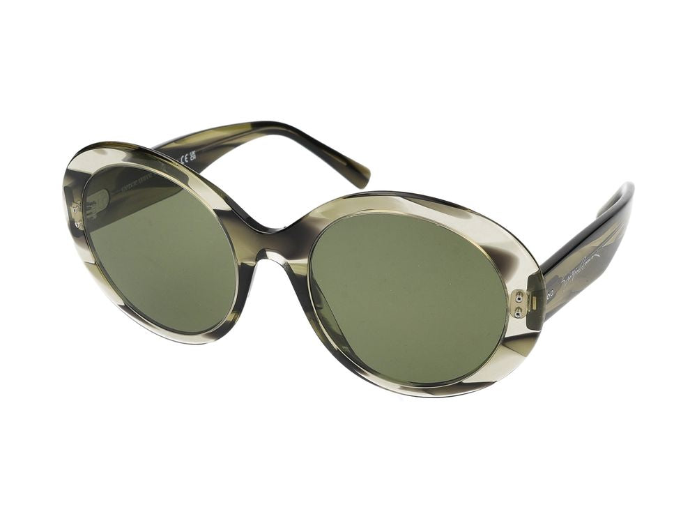 Elevate your eyewear collection with these stunning Giorgio Armani sunglasses featuring a sophisticated striato verde design. The rounded frames showcase a beautiful striped pattern with green-tinted lenses that offer both style and sun protection.