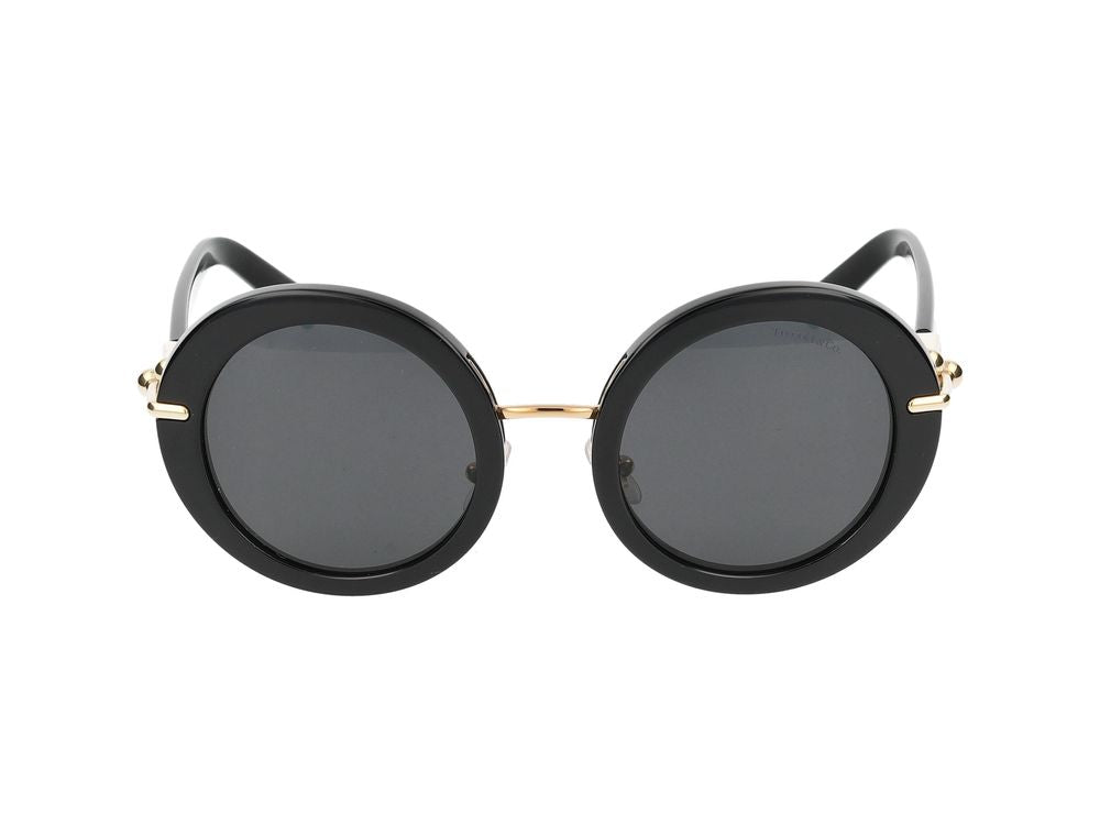 Elevate your everyday style with these stunning round sunglasses from TIFFANY & CO. Featuring a sophisticated black frame with elegant gold-tone accents on the temples, these sunglasses perfectly blend timeless design with modern luxury.