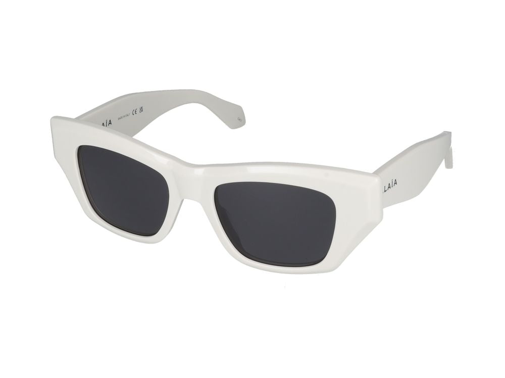 With their clean white colorway and bold geometric lines, these designer sunglasses seamlessly blend high-fashion aesthetics with everyday wearability.