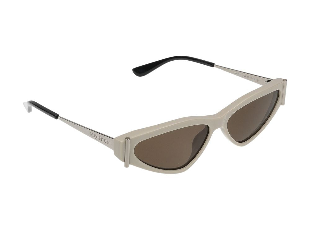 Elevate your eyewear collection with these stunning Alexander McQueen cat-eye sunglasses. Featuring a chic white and silver frame with brown lenses, these designer shades offer both sophisticated style and UV protection.