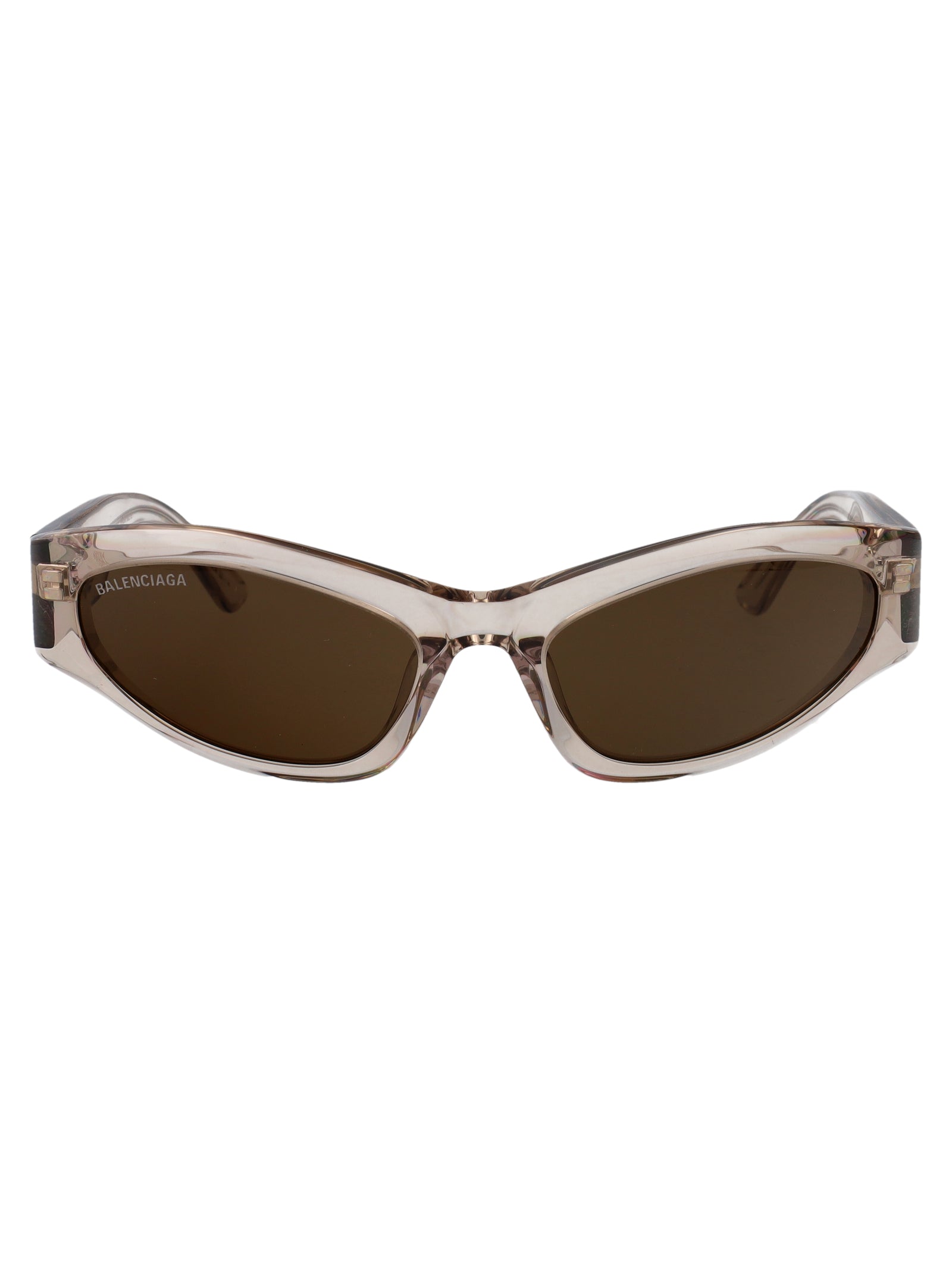 Elevate your eyewear collection with these stunning Balenciaga BB0387S sunglasses in a sophisticated beige translucent frame with rich brown lenses. The sleek cat-eye silhouette adds a touch of retro glamour while maintaining a contemporary edge that's perfect for the modern fashion enthusiast.